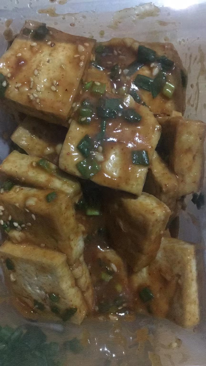 烧豆腐烧豆腐一.配料二.操作步骤2.1 准备工作2.2 实操部分三.成品展示一.配料 卤水豆腐、辣椒粉、熟芝麻、香葱、蒜、生抽、白糖、香油、玉米淀粉水 二.操作步骤 - 2.1 准备工作1.豆腐切成一公分薄厚、5公分宽四方块儿,下过煎炸至表面金黄取出配用2.香葱切成葱花放入碗中、依次放入生抽、蒜沫、白糖、香油、辣椒粉、加入适量玉米淀粉水搅拌均匀。 - 2.2 实操部分1.小火放入适量油、放入炸好的豆腐2.倒入调料汁炖至收汤即可 三.成品展示 烧豆腐 文档更新时间: 2022-11-01 23:00 作者:xiubao yan