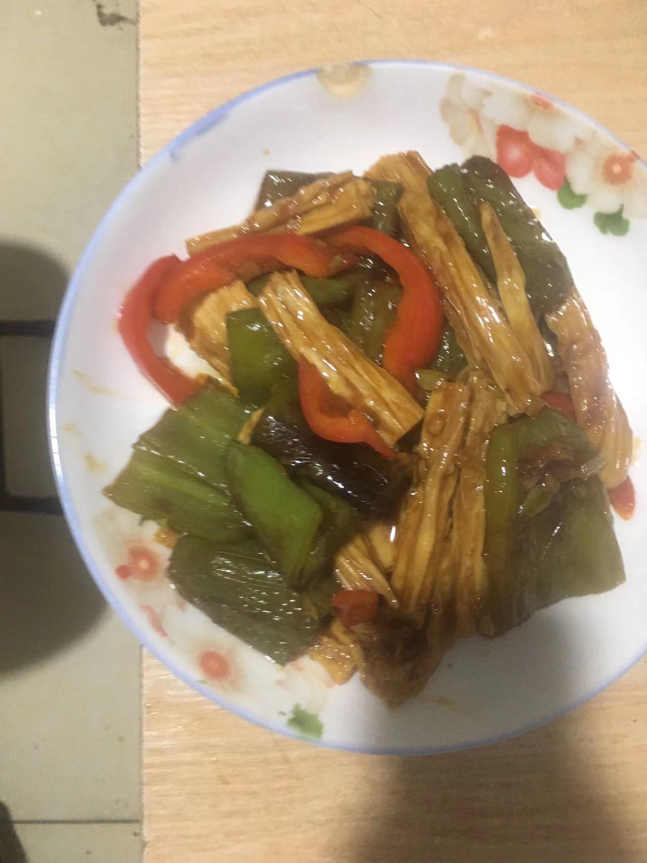尖椒、腐竹、葱、姜、蒜、醋、盐、胡椒粉、黄酒、糖、酱油、老抽