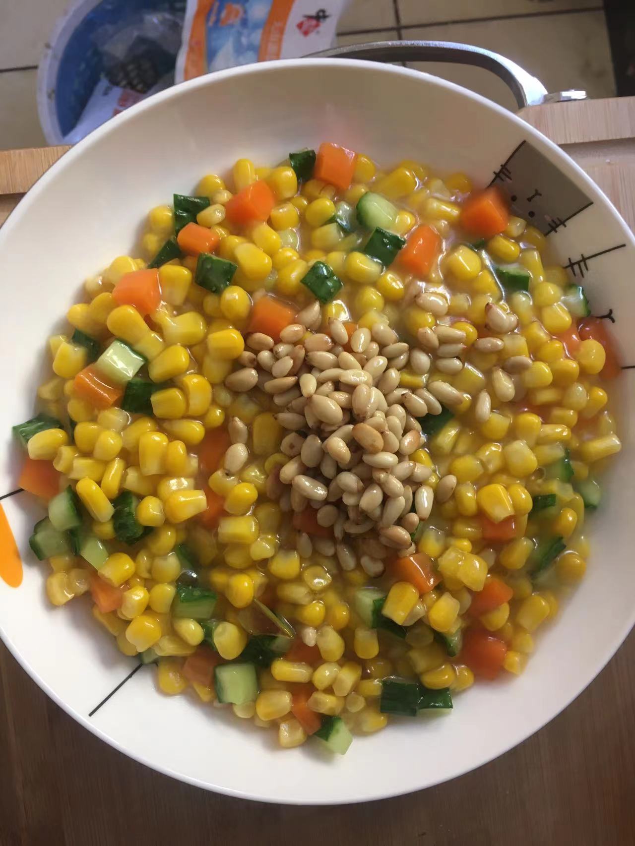 松仁玉米松仁玉米一.配料二.操作步骤2.1 准备工作2.2 实操部分三.成品展示一.配料 松仁、玉米、黄瓜、胡萝卜 二.操作步骤 - 2.1 准备工作1.黄瓜、胡萝卜切成小丁,葱花使用芯切成菱形比例:1比1比0.32.烧油热到放入胡萝卜丁试油温,冒泡后加入凉油,加入松仁炸一下即可 - 2.2 实操部分1.玉米粒用水洗两遍,锅中下入葱花煸香、加入适量水,加入胡萝卜和黄瓜,放入少许盐,放入适量糖2.玉米淀粉水勾芡,米汤芡往食材上泼,加入适量明油 三.成品展示 松仁玉米 文档更新时间: 2022-11-01 23:00 作者:xiubao yan