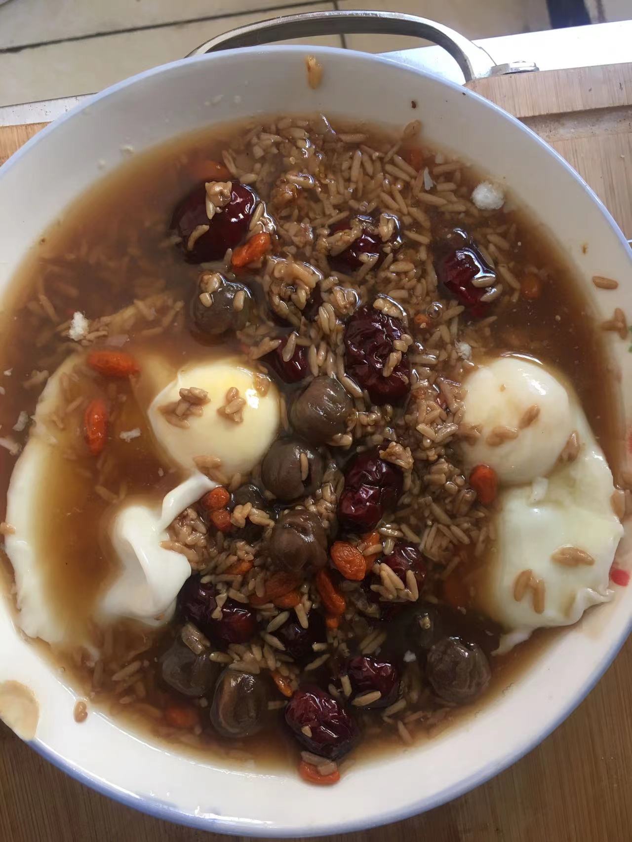 鸡蛋、枸杞、桂花酱、酒糟、红枣、红糖、桂圆干