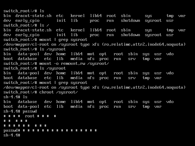 在红帽企业linux8中,可以使从initramfs运行的脚本在某些点暂停,提供root shell,然后再该shell存在的情况下继续。这主要是为了进行调试,但也可以使用该方式来重置丢失的root密码。
